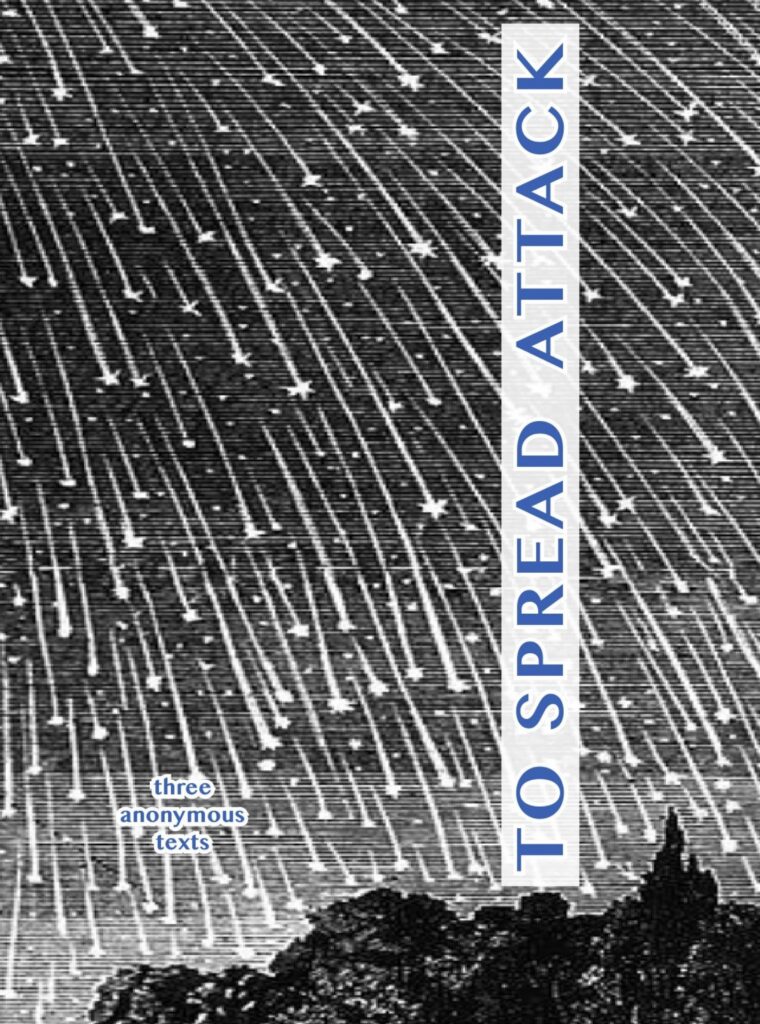 There is no reason to go back to acronymed formal groups, red guerrilla chauvinism, technicalities which kill the spirit, fear of repression which throws water on the fire, specialisms which stand in the way of the spread of revolt, political-realist skepticism which restrains insurrectional possibility. Not one millimeter back! Once all this has been put on the pyre where it belongs along with every form of militarism and politics (whatever their disguise), offensive and subversive anarchism has a whole universe to explore. One which has been preserved and re-proposed throughout its satanic heritage which this publication you hold in your hands is a part of. This living heritage is our most precious possession, our most diabolical weapon.
